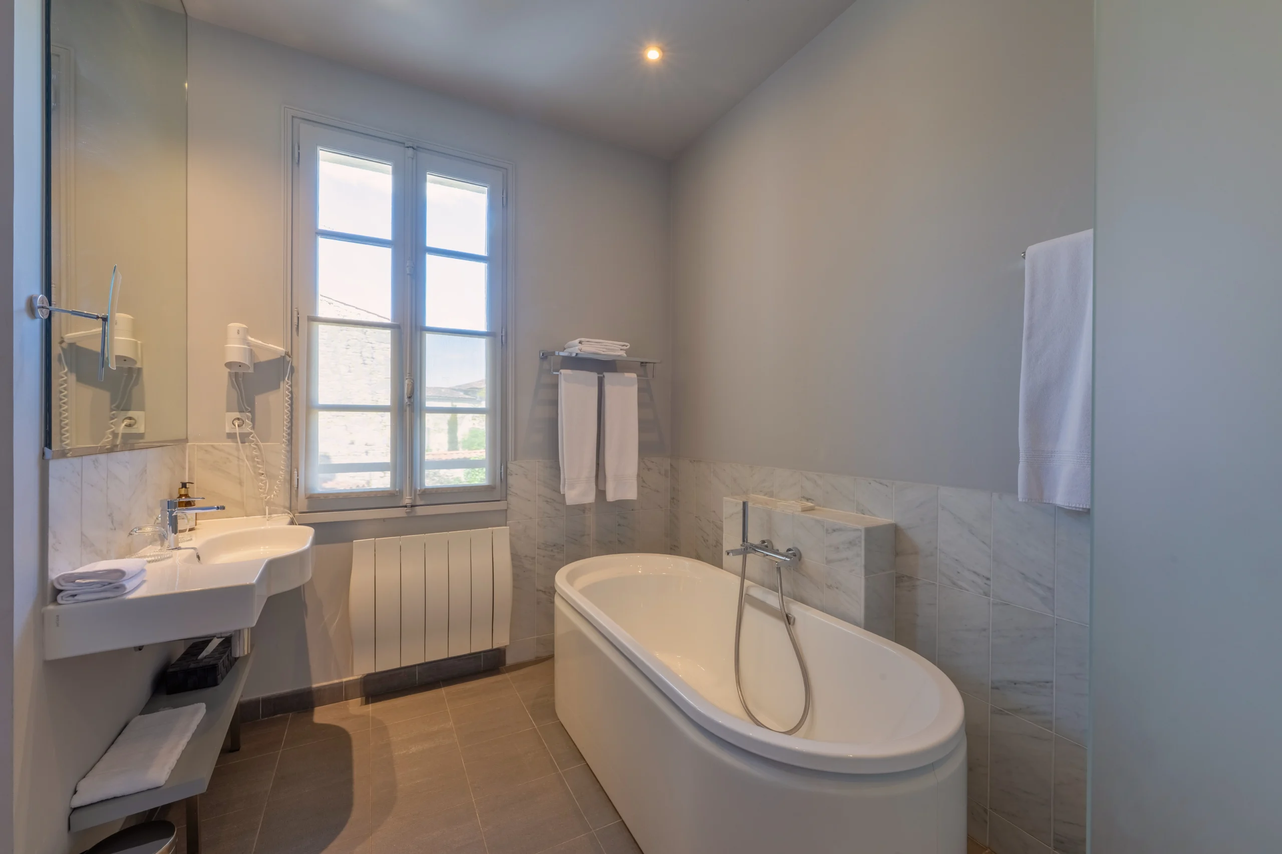 Le charme de l’Hôtel Ligaro réside également dans son architecture et ses matériaux nobles. Les murs en pierre apparente, les ferronneries d’art, le mobilier sur mesure et le savoir-faire artisanal confèrent à cette demeure historique une ambiance feutrée et élégante. À l’arrière de la maison, un jardin calme et verdoyant invite à la relaxation, tandis qu’une tour historique, vestige des anciens remparts du château de Jarnac, rappelle le riche passé de la ville et renforce le sentiment d’évasion.
